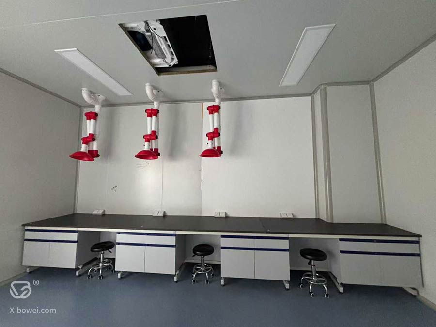 实验台安装项目:边台、药品柜、器皿柜、万向抽气罩、滴水架、洗眼器、插座、实验凳、水槽龙头等配件
