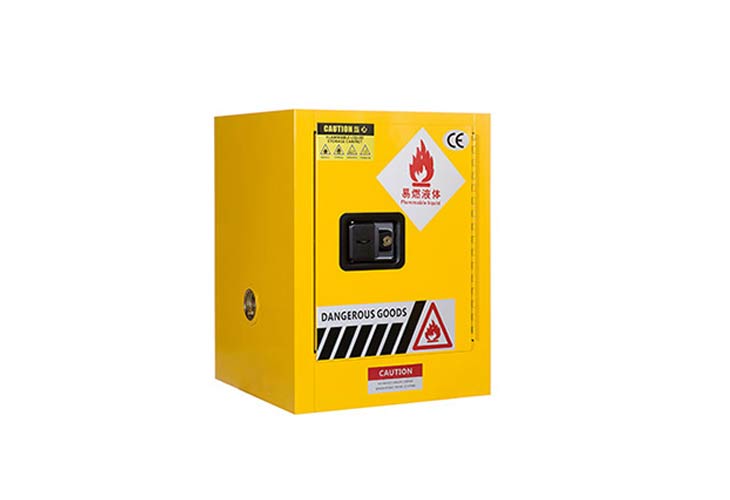 柜身内部配备可调层板,便于存放酒精等易燃物品,提高空间利用率,两侧装有2个防避火装饰的透气孔,可启闭180度的柜门。