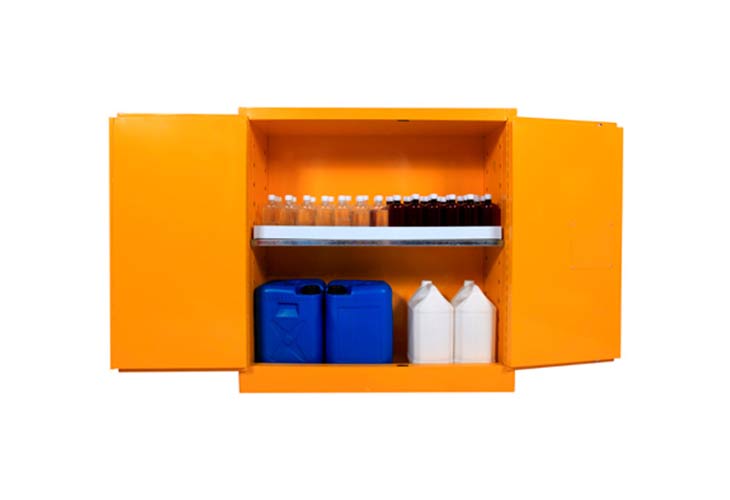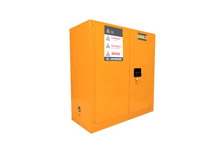 柜身内部配备可调层板,便于存放酒精等易燃物品,提高空间利用率,两侧装有2个防避火装饰的透气孔,可启闭180度的柜门。