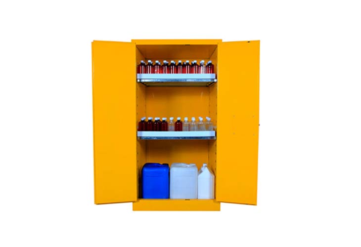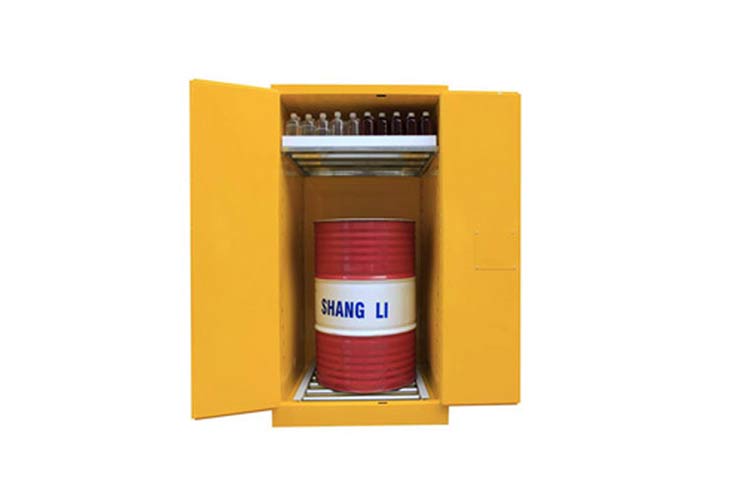 柜身内部配备可调层板,便于存放酒精等易燃物品,提高空间利用率,两侧装有2个防避火装饰的透气孔,可启闭180度的柜门。