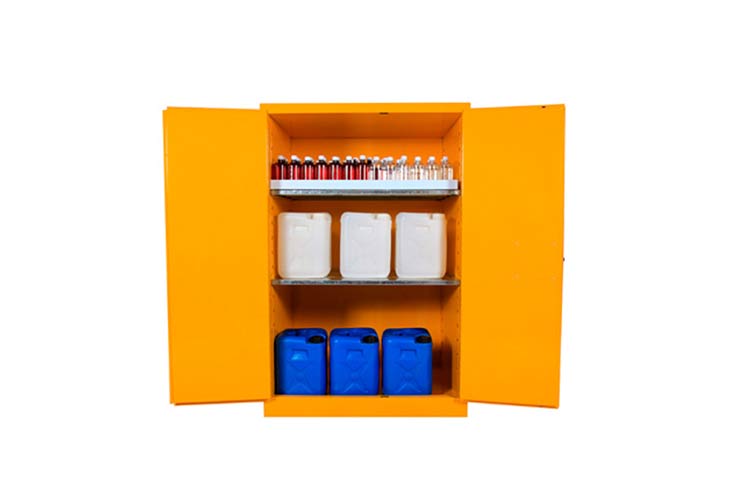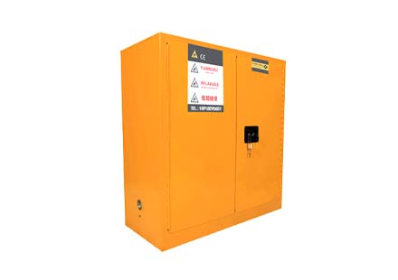 柜身内部配备可调层板,便于存放酒精等易燃物品,提高空间利用率,两侧装有2个防避火装饰的透气孔,可启闭180度的柜门。