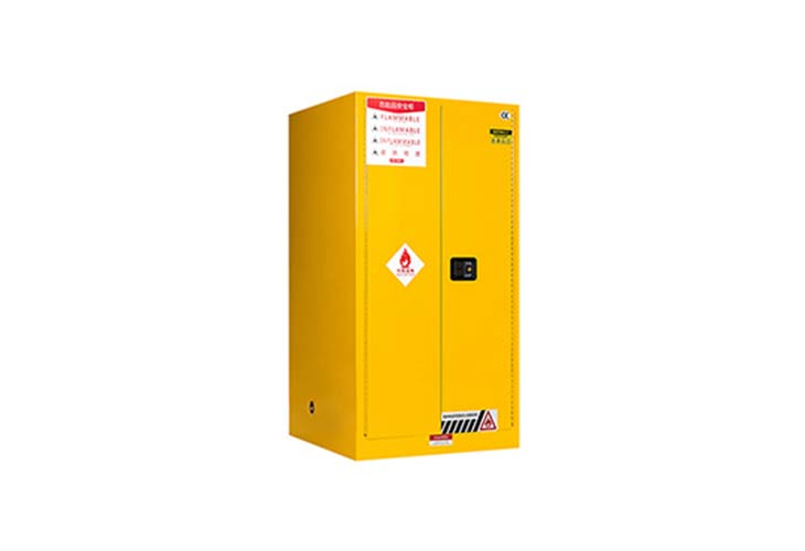 柜身内部配备可调层板,便于存放酒精等易燃物品,提高空间利用率,两侧装有2个防避火装饰的透气孔,可启闭180度的柜门。